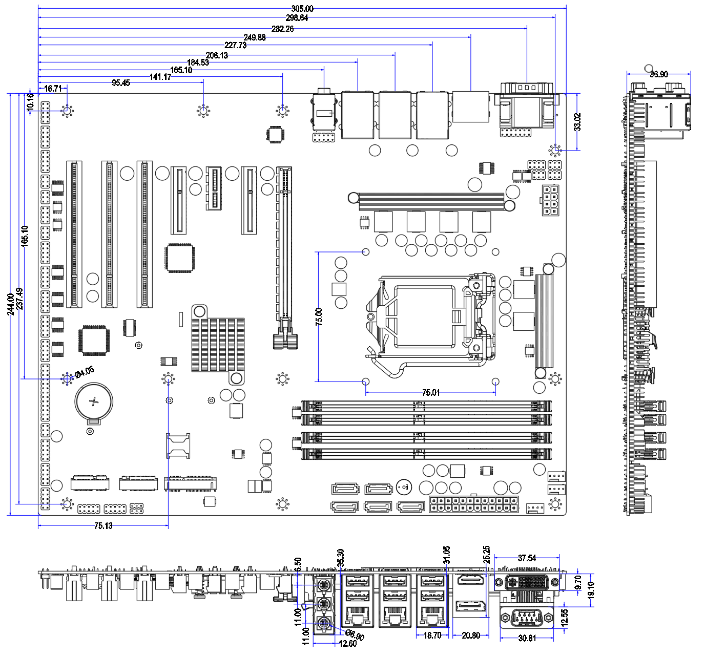 3*LAN(LAN1/LAN2為RTL8111H,LAN3為Intel I219V),6*USB3.0,1*DB9 COM |