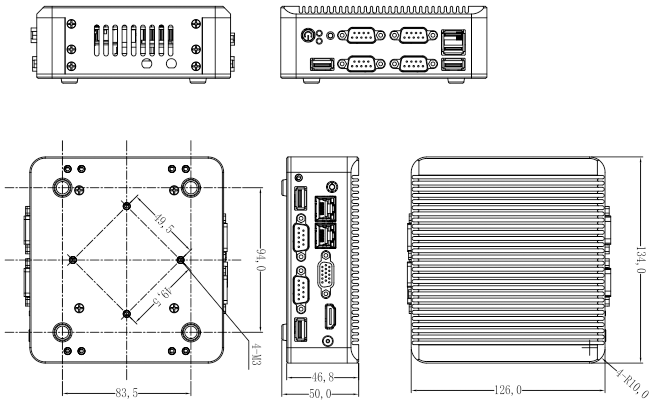 1*HDMI 2*USB3.0 4*USB2.0 2*LAN 6*COM(COM1,2可通過跳帽和BIOS設(shè)置選擇為RS232或RS485,RS485支持自動流向控制,COM3,COM4,COM5,COM6為RS232) 1*快速開機(jī)按鈕帶指示燈1*復(fù)位按鈕 1*DC 1*電源指示燈 1*硬盤指示燈 |