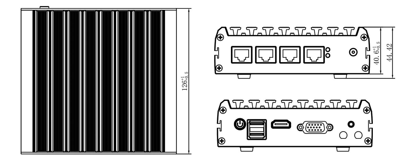 ◆ I/O rich Port,Including 2*USB Port/4*Intel I211 lan Card,1*HDMI,1*VGA display connector 1*RJ45 RS232 Port;