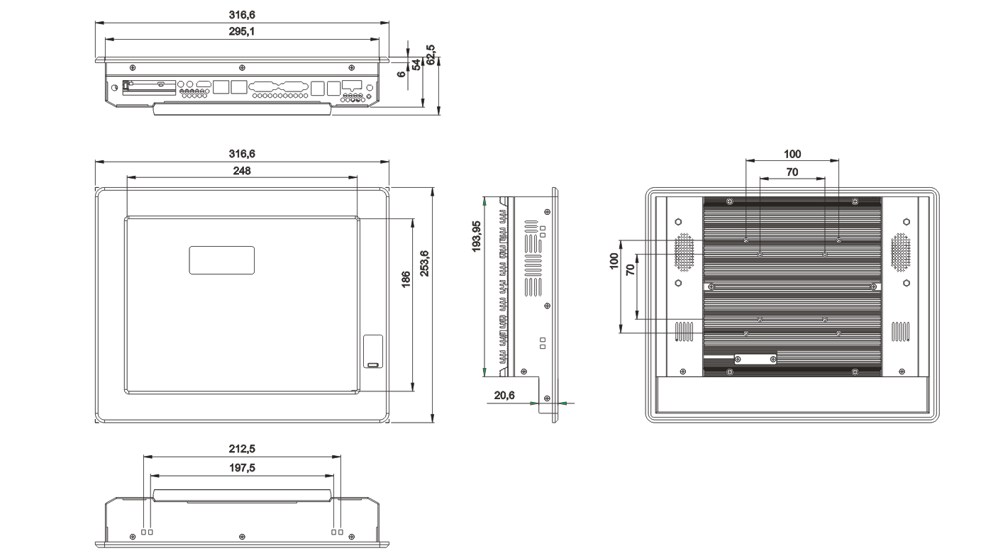 2*RS422/485/232為DB9接口 4個三線RS-232(鳳凰端子接口), 2*USB2.0,2*USB3.0, 1*14BIT GPIO端口, 1*LINE OUT 1*MIC, 2*Wifi天線接口, 1*按鈕開關(guān), 1*HDMI 最大分辨率支持3200*2000@60HZ |